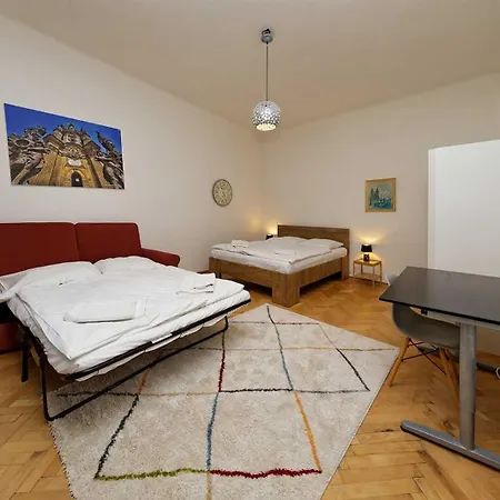 Dit appartement bevindt zich in de wijk Praag 1, op 10 minuten loopafstand van Florenc metrostation. De accommodatie is op een paar stappen lopen van het Museum van het communisme en biedt een gemakkelijke wandeling van 15 minuten naar het centrum van Praag.